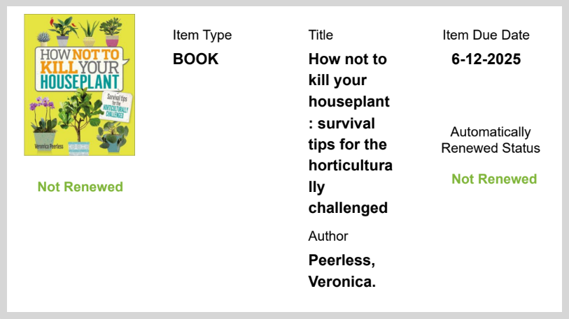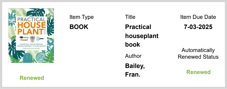 Starting July 1, 2025, any items checked out AFTER July 1 will renew automatically from the original due date.